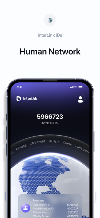 Interlink Ağı, bir ID sistemi aracılığıyla "insan merkezli dijital ekosistem" sunan ücretsiz bir finans uygulamasıdır. Her bir kullanıcının bir bot değil, gerçek bir kişi olduğunu İnsanlık Kanıtı ve biyometrik doğrulama ile sağlamaktadır. Oyun liderlik tabloları, dijital varlık cüzdanı ve çeşitli mini uygulamalar dahil olmak üzere çeşitli araçlar sunmaktadır.
